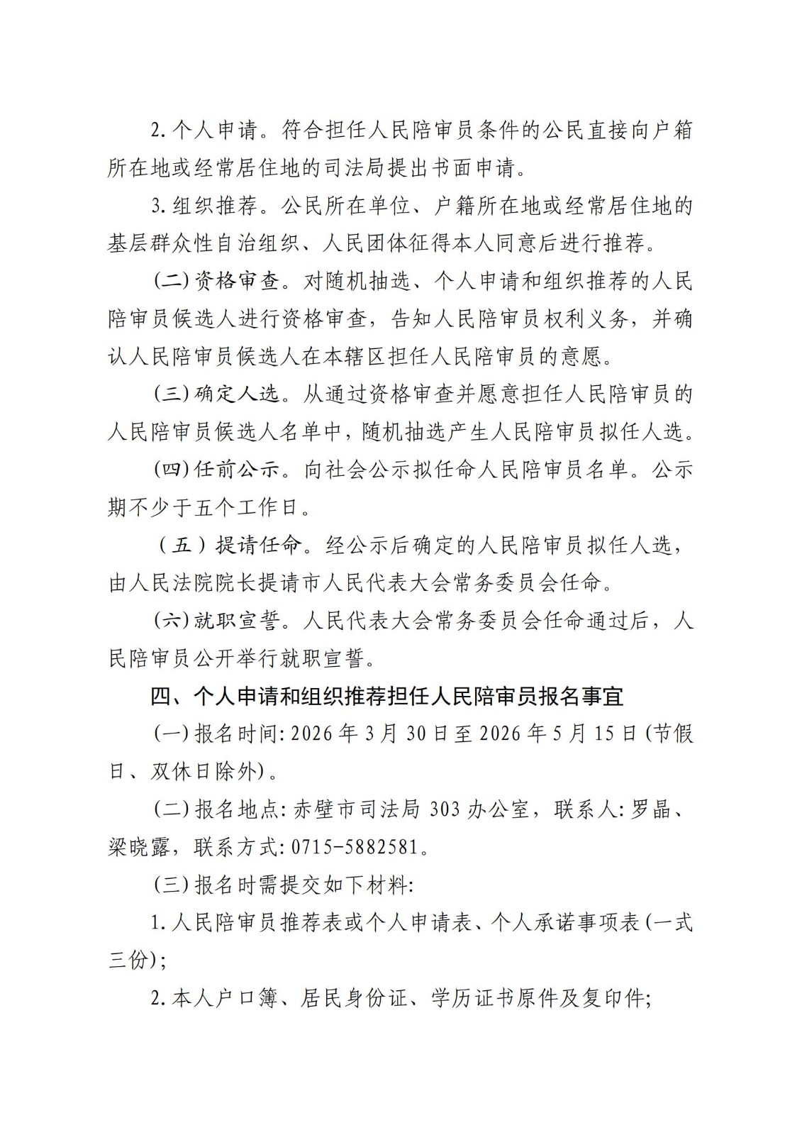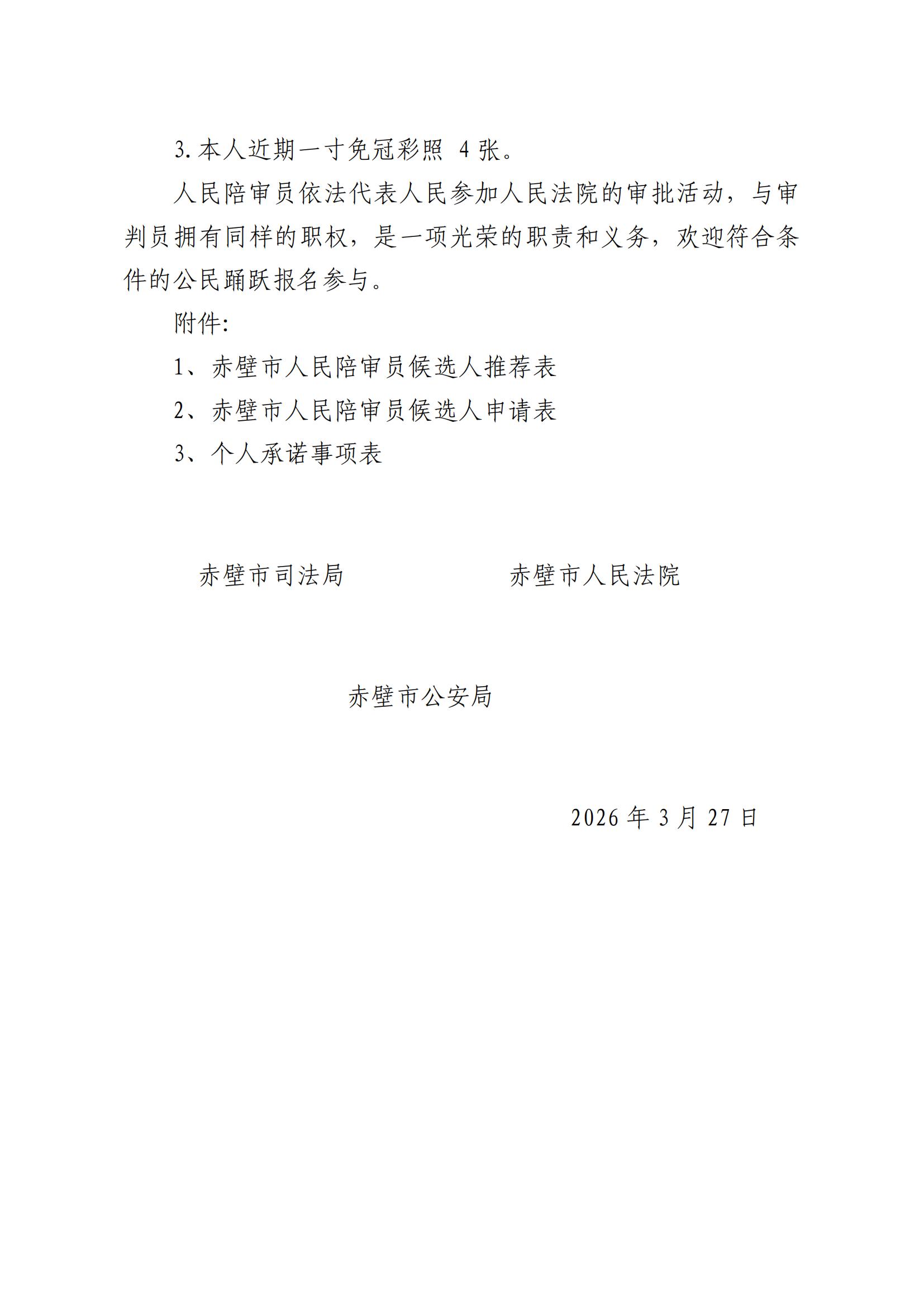 关于2026年赤壁市人民陪审员选任公告